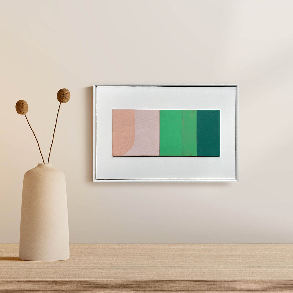 A sharp graphic line against a delicate torn edge. Rough patina against solid colour. A square next to a curve. My work is focused on abstraction using colour and different materials from papers to wood to inform the juxtaposition between delicacy and strength.